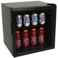Avanti 1.9 Cubic Foot Auto Defrost All Refrigerator/Beverage Center with Reversible double-pane glass door with black frame, Recessed handle, Black liner, Two black shelves (1 large/1 small), Full range temperature control, 18.75"W x 20.5"H x 17.25" D, 40 lbs.